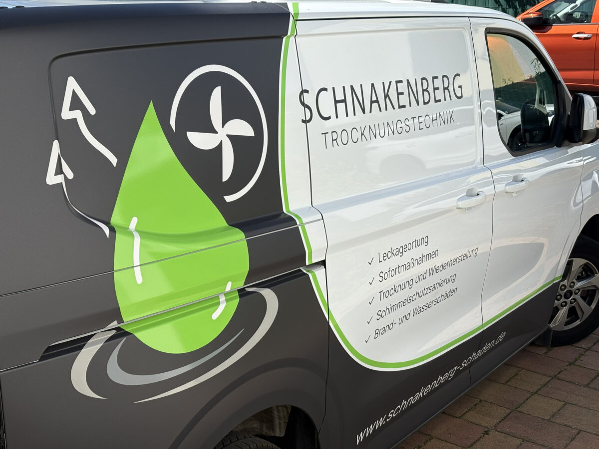 Für die Erweiterung des bestehenden Malerbetriebs entstand mit „Schnakenberg Trocknungstechnik“ eine zweite, eigenständige Marke. Ziel war es, eine klare visuelle Abgrenzung zu schaffen und gleichzeitig die Zugehörigkeit zum bestehenden Unternehmen erkennbar zu halten.